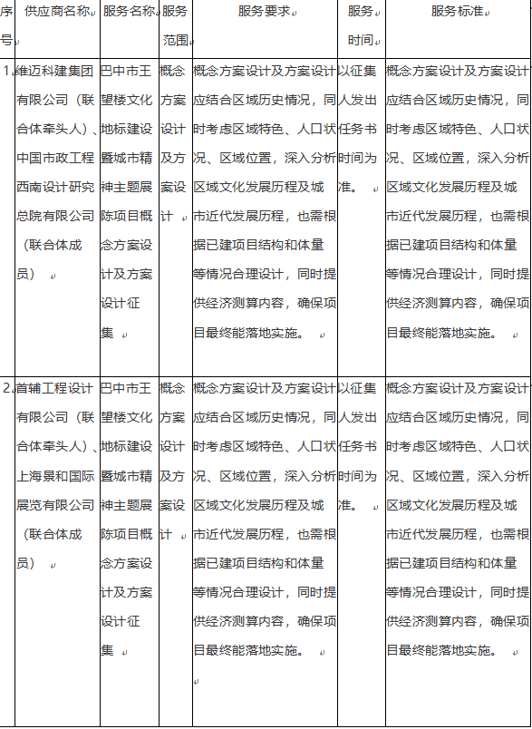 供應(yīng)商名稱:中展建設(shè)股份有限公司(聯(lián)合體牽頭人)、四川高地工程設(shè)計(jì)咨詢有限公司(聯(lián)合體成員)
